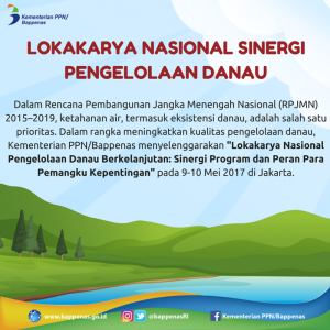 Jakarta – Indonesia adalah negara dengan kekayaan dan keindahan alam luar biasa, salah satunya adalah danau yang tersebar di berbagai pulau. Selain sebagai sumber air minum dan sumber air untuk keperluan sehari-hari, danau juga dimanfaatkan sebagai sumber air baku industri, sarana transportasi air, energi, irigasi, pariwisata, serta sumber protein dari usaha perikanan. Untuk meningkatkan kualitas pengelolaan danau, Kementerian PPN/Bappenas bekerja sama dengan Knowledge Sector Initiative (KSI) menggelar Lokakarya Nasional “Pengelolaan Danau Berkelanjutan: Sinergi Program dan Peran para Pemangku Kepentingan” di Jakarta, 9-10 Mei 2017. Lokakarya tersebut mendiskusikan beberapa isu strategis yang sangat penting untuk diselesaikan, antara lain pencemaran air akibat aktivitas di dalam dan sekitar kawasan ekosistem danau, tata ruang penggunaan wilayah kawasan danau yang holistik, peraturan dan manajemen yang terintegrasi dan sinergi dalam pengelolaan danau berkelanjutan, serta pemanfaatan kawasan danau untuk aktivitas pariwisata yang berkelanjutan.