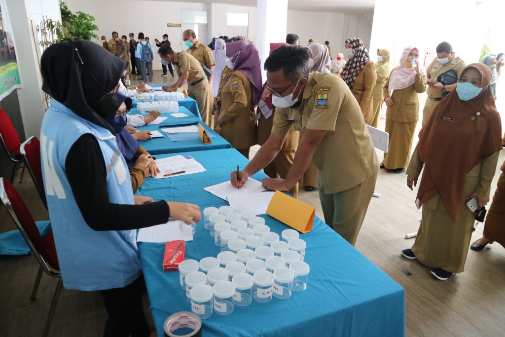 CIREBON – Ratusan penyelenggara negara di lingkungan Pemerintah Daerah (Pemda) Kota Cirebon mengikuti tes urin. Tes urin sebagai bentuk dukungan terhadap penyelenggara negara yang bersih dan bebas narkoba.