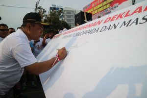Hal tersebut diungkapkan Wali Kota Cirebon, Drs. H. Nashrudin Azis, SH., usai pembacaan deklarasi tolak kerusuhan bersama dengan Forkopimda Kota Cirebon dengan mengambil tema, Indonesia Damai Merajut Kesatuan Dalam Kebhinekaan, Minggu, 23 Juni 2019.