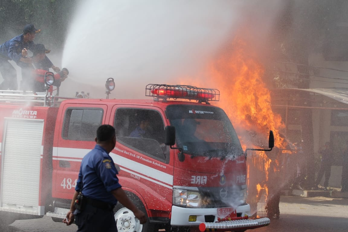 Rabu, (26/08/2015) Kantor Penanggulangan Bencana Daerah dan Pemadam Kebakaran (KPBDDPK) Kota Cirebon mensimulasikan Kendaraan Pemadam Kebakaran yang baru di halaman belakang Balaikota Cirebon, di saksikan sejumalah undangan OPD se-Kota Cirebon dan Karyawan Setda Kota Cirebon, tampak hadir pula dalam kegiatan tersebut Sekda Kota Cirebon Drs Asep Dedi MSi.