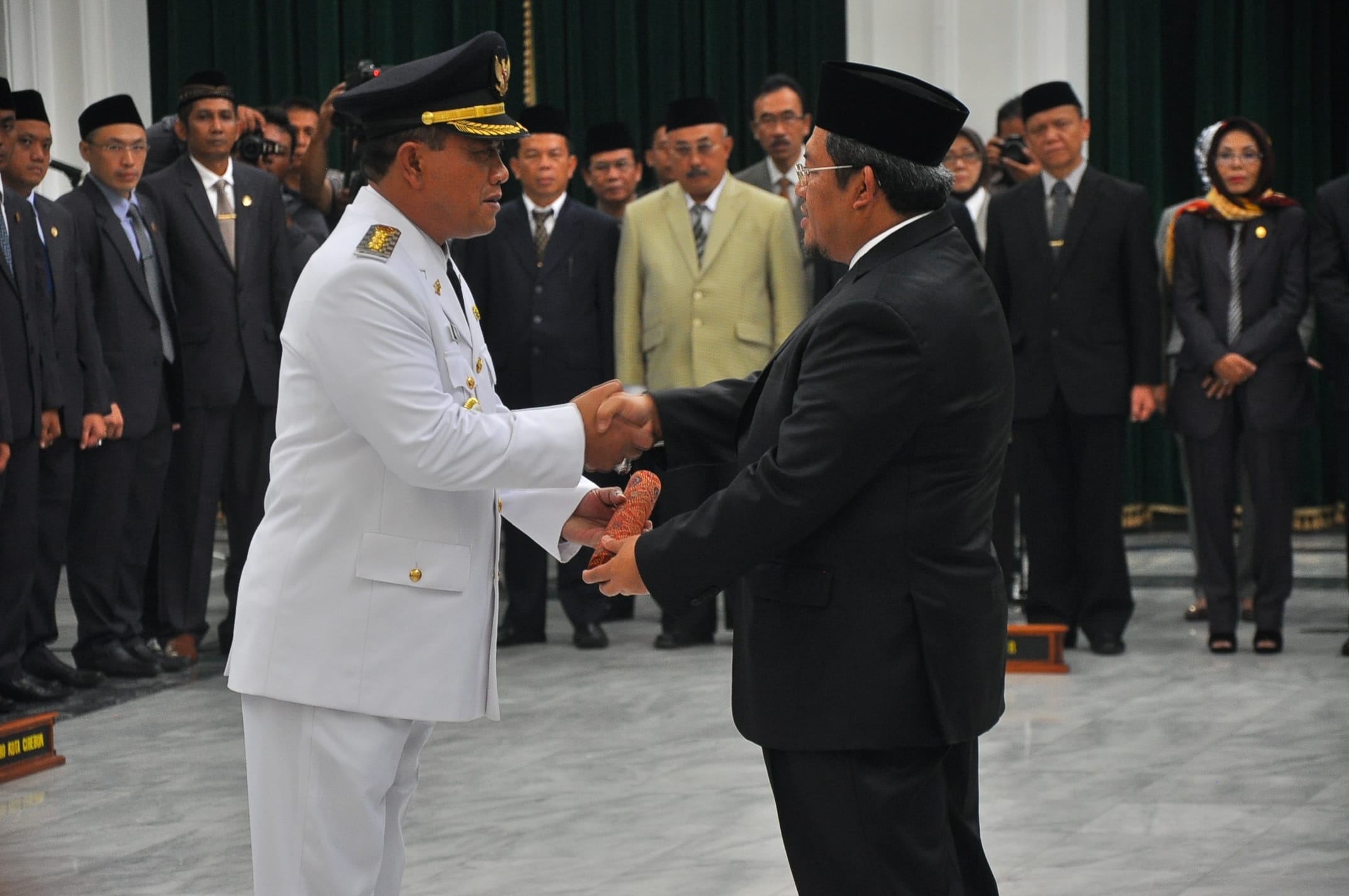 Wakil Walikota Cirebon Nasrudin Azis akhirnya resmi dilantik menjadi Walikota Cirebon yang baru oleh Gubernur Jawa Barat Ahmad Heryawan di Aula Barat Gedung Sate, Kamis (26/3/2015) pagi pukul 10.00.
