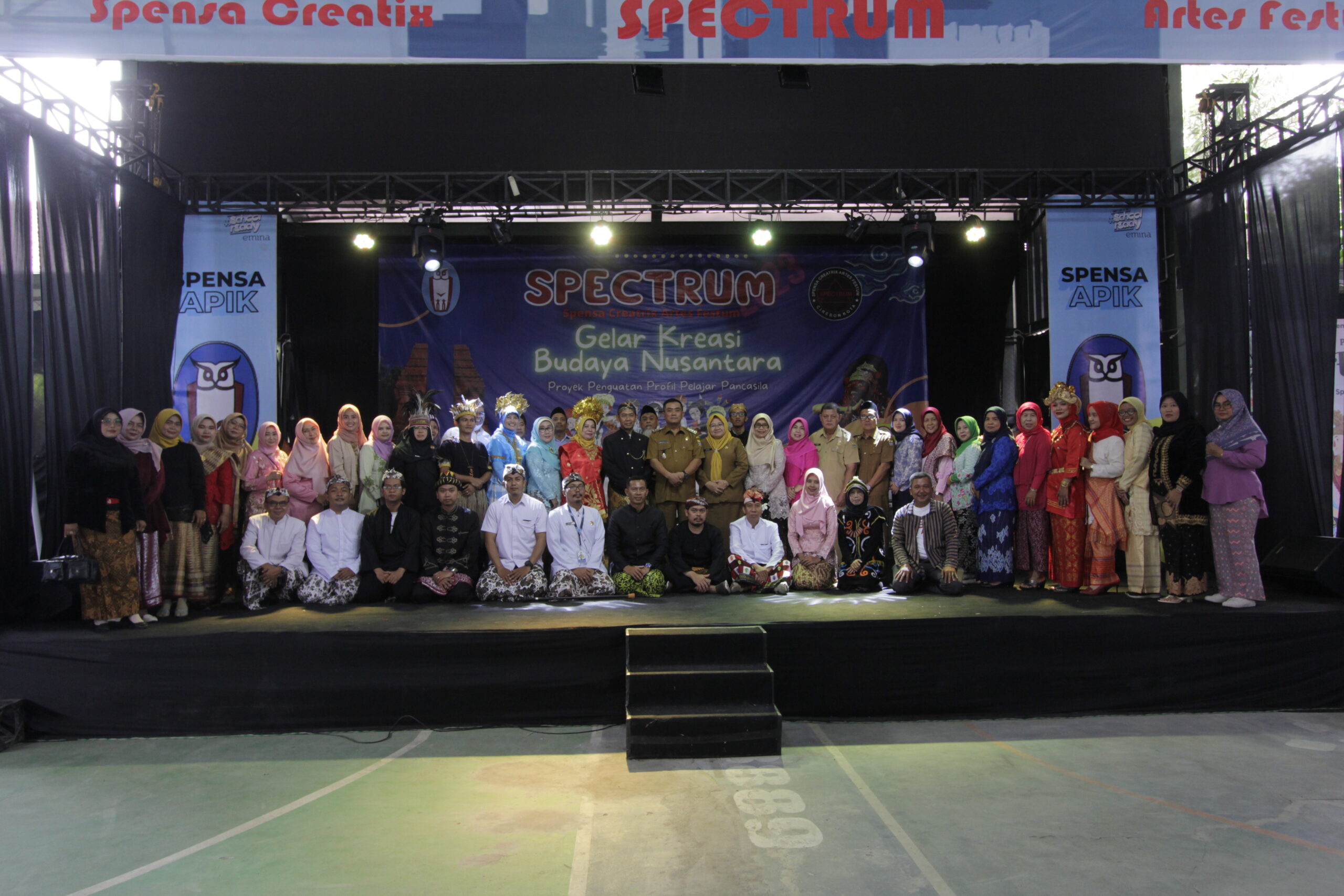 CIREBON - Pentas Seni dan Kreasi Nusantara Spensa Creatrix Artes Festum (Spectrum) di SMP Negeri 1 Cirebon, berlangsung meriah, Senin (6/3/2023). Berbagai kreativitas seni nusantara dipertunjukkan oleh siswa siswi kelas VII sampai kelas IX.