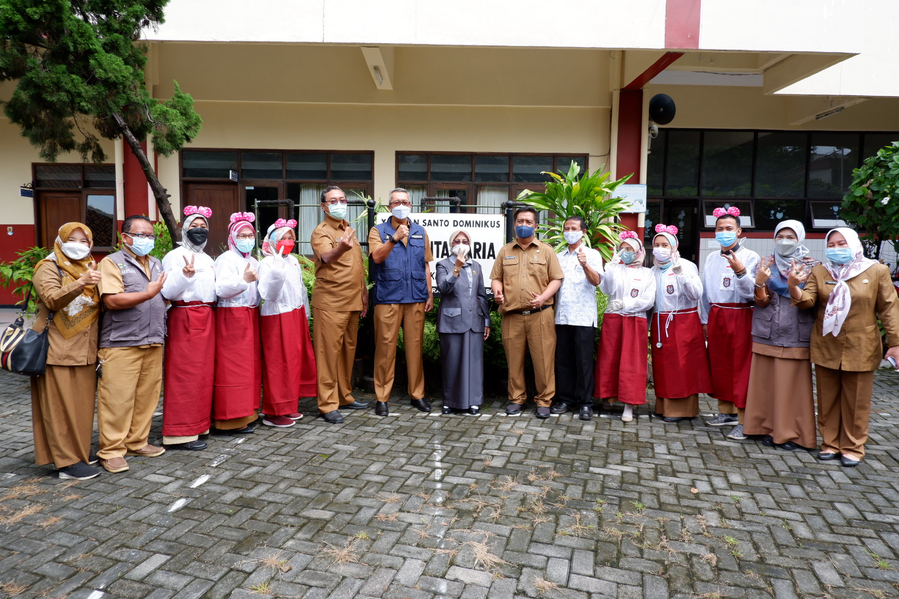 “Hari ini vaksinasi dulu. Tapi untuk SMP dan SMA PTM 100 persen sudah berjalan. Protokol kesehatan nya juga sudah baik, seperti di sekolah ini,” tutur Agus saat melakukan monitoring di SD Santa Maria. Dijelaskan Agus, untuk PTM 100 persen tingkat SD, mereka memproteksi siswa dengan melakukan vaksinasi Covid-19.