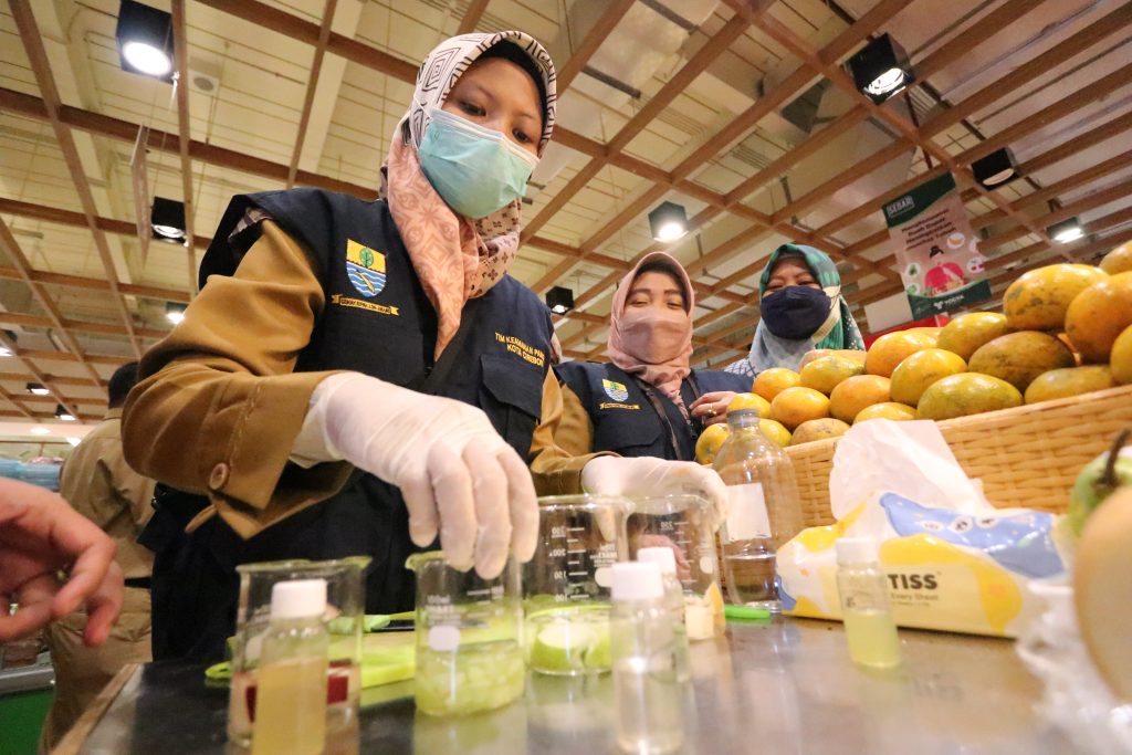CIREBON - Sepekan menjelang Hari Raya Idulfitri 1443 H, Dinas Ketahanan Pangan, Pertanian dan Perikanan (DKPPP) Kota Cirebon melakukan pemeriksaan kandungan sejumlah bahan pangan di pasaran.