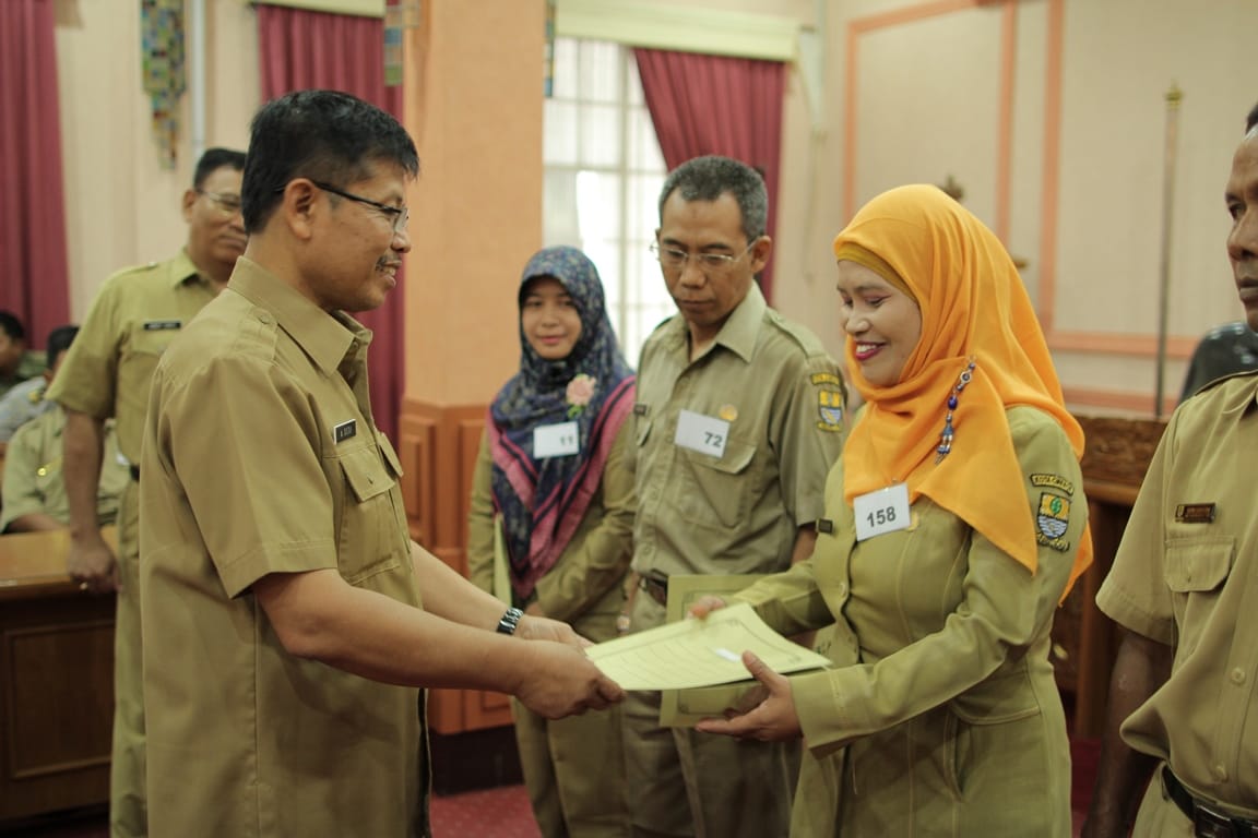 163 PNS Se-Kota Cirebon menerima SK Kutipan Kenaikan Pangkat dan golongan yang di serahkan oleh Sekda Kota Cirebon Drs Asep Dedi Msi. Dalam sambutannya Sekda Kota cirebon yang dalam hal ini mewakili Walikota Cirebon Drs Nasrudin Azis SH menyampaikan selamat kepada PNS yang naik pangkat dan golongannya.