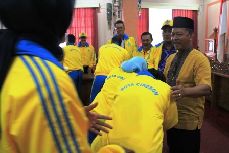Walikota Cirebon Drs. H. Ano Sutrisno, MM., beserta Wakil Walikota Drs. H. Nasrudin Azis, SH melepas kontingen Porpemda ke-IX Tingkat Propinsi Jawa Barat di Kab. Cianjur di Ruang Adipura Balaikota Cirebon