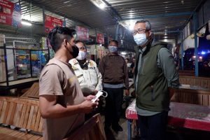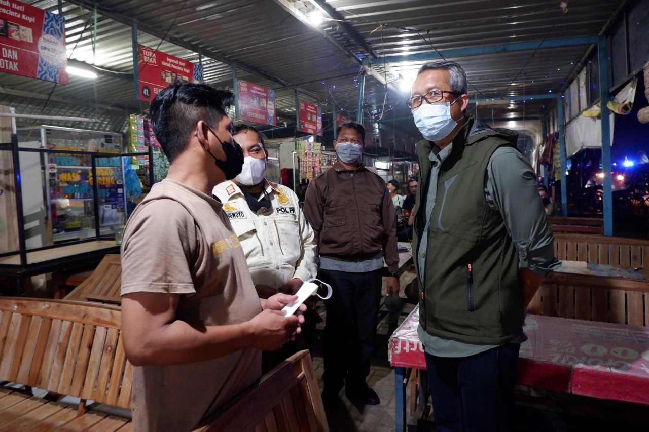 Kepada pedagang juga diminta untuk disiplin mematuhi jam operasional berjualan. Sekda juga terlihat membagi-bagikan masker kepada masyarakat yang terlihat tidak menggunakan masker.