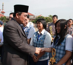 Wakil Walikota Cirebon Drs.Nasrudin Azis, SH. memberikan penghargaan kepada Generasi Muda yang memilki prestasi di bidang pendidikan