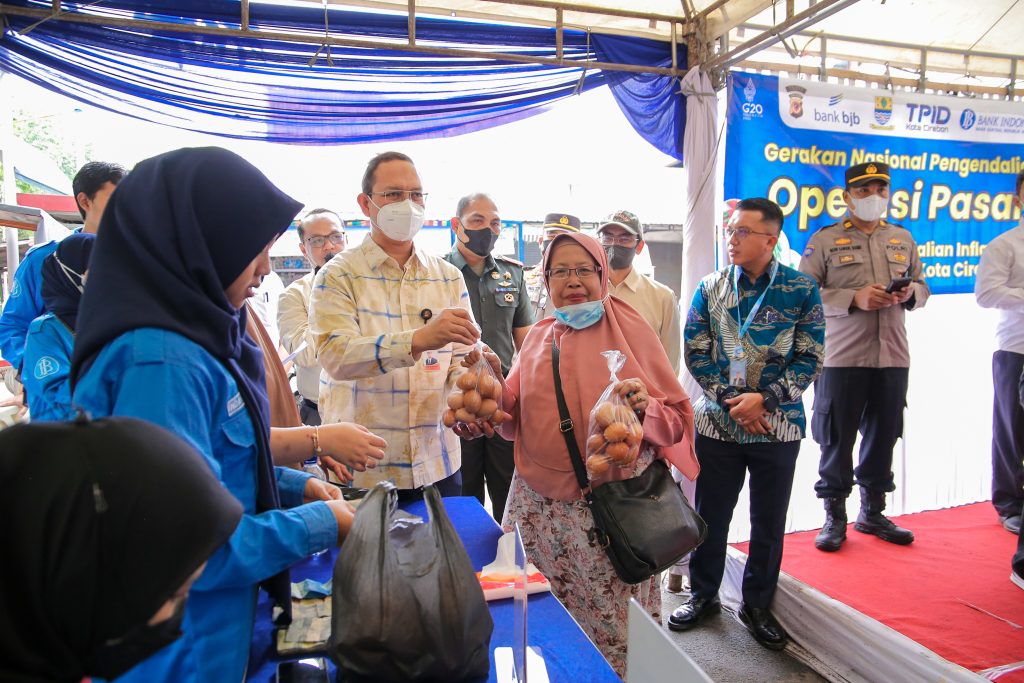 Salah satunya dengan menggelar operasi pasar. Seperti dilakukan Tim Pengendali Inflasi Daerah (TPID) Kota Cirebon, di halaman Pasar Pagi. Operasi pasar digelar selama dua hari, 7-8 September 2022.