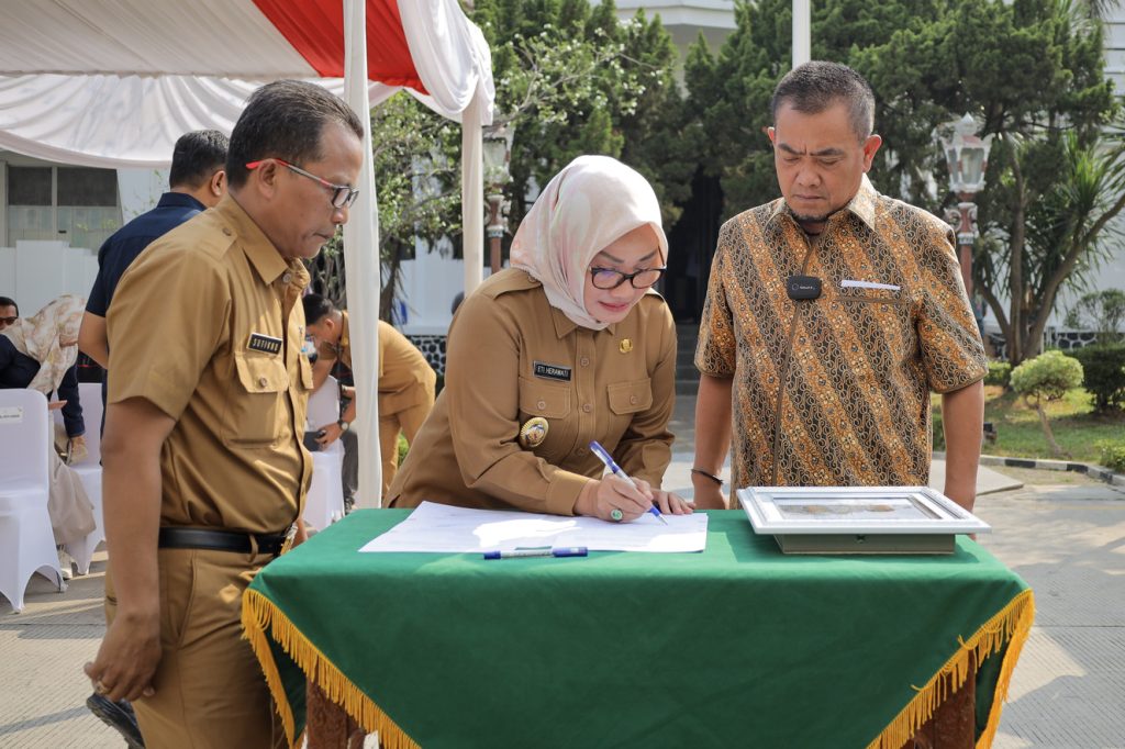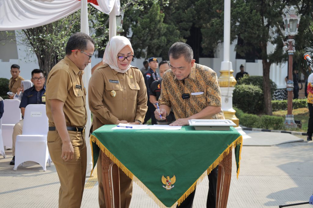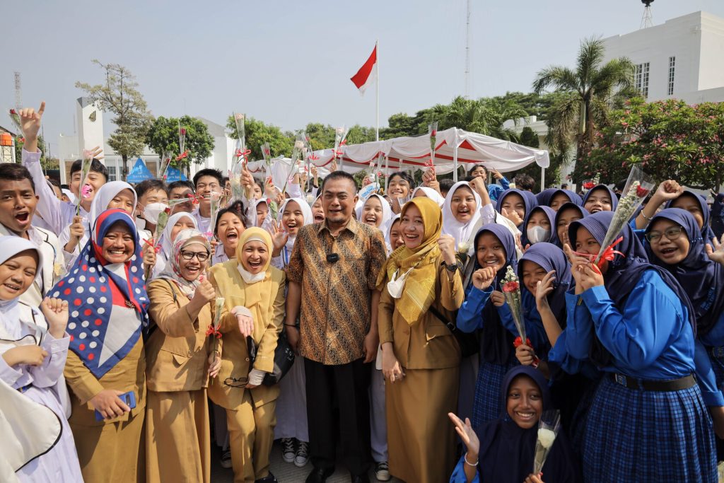 Hadir dalam kesempatan tersebut para pejabat di lingkungan Pemda Kota Cirebon, unsur Forkopimda, pejabat dari instansi vertikal lainnya, perwakilan DPRD Kota Cirebon, hingga ratusan pelajar.