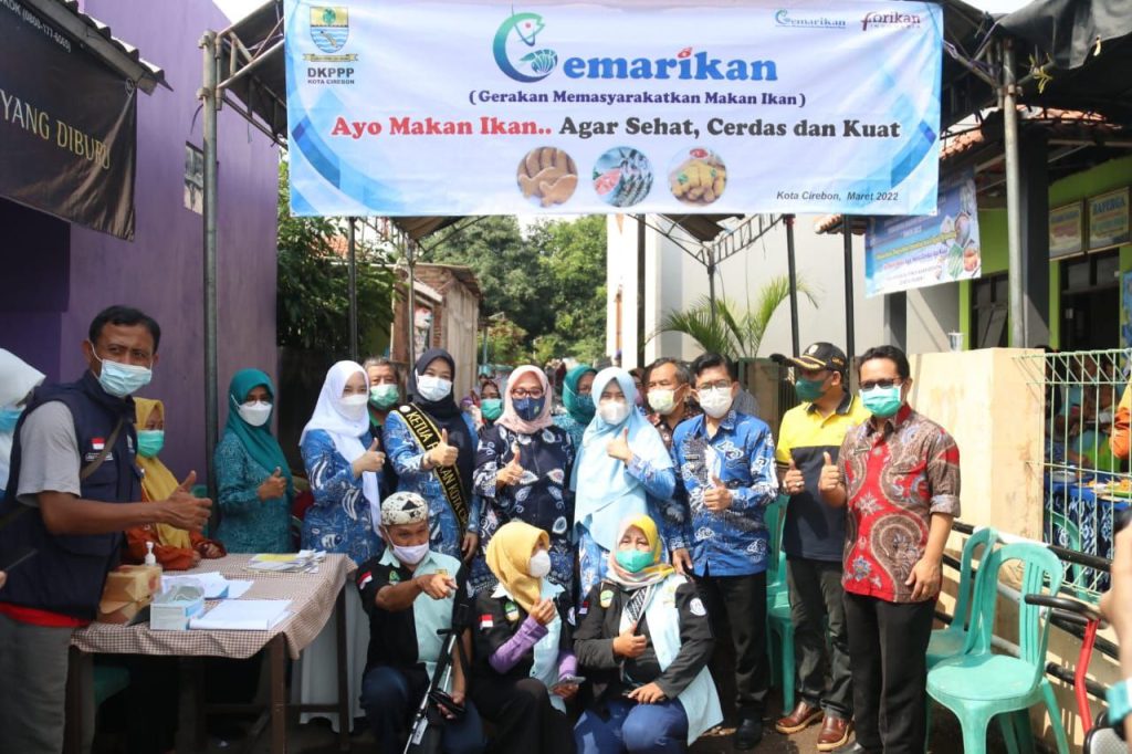 CIREBON - Pemerintah Daerah (Pemda) Kota Cirebon melalui Dinas Ketahanan Pangan, Pertanian dan Perikanan (DKPPP) sosialisasi gemar makan ikan, di Baperkam RW 10, Kelurahan Karyamulya, Kecamatan Kesambi, Jumat (25/3/2022).