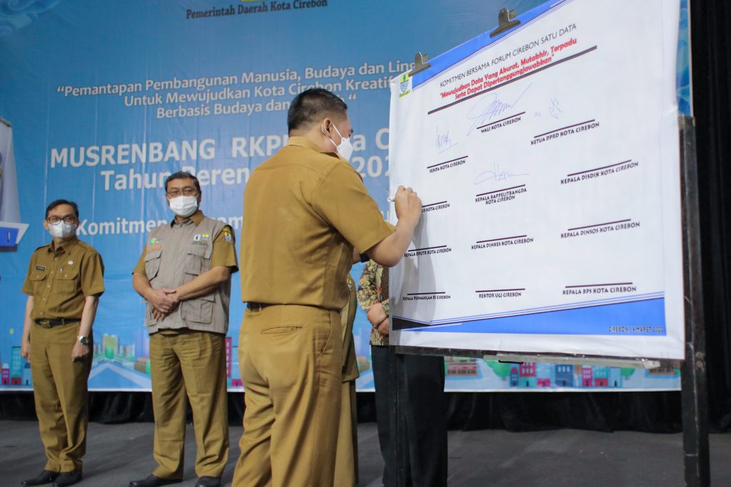 Penandatanganan komitmen bersama dilakukan berbarengan dengan Musyawarah Perencanaan Pembangunan Rencana Kerja Pemerintah Daerah (Musrenbang RKPD) Kota Cirebon tahun 2023, Senin (14/3/2022), di Ballroom Hotel Prima Kota Cirebon.