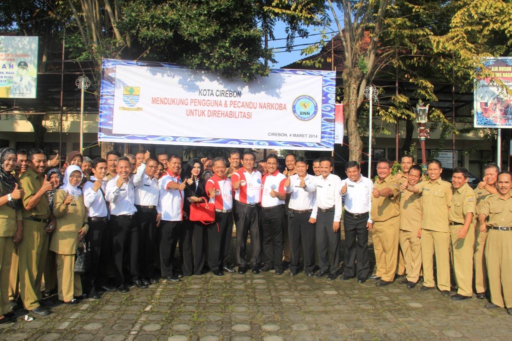 Kota Cirebon, (5/3/2014) Walikota Cirebon Drs H Ano Sutrisno MM melaksanakan apel di lapangan apel balaikota cirebon dalam rangka sosialisasi BNN tentang penyalahgunaan Narkoba di wilayah Kota Cirebon. Tampak hadir dalam Apel yang di pimpin oleh Direktur Peran serta masyarakat Deputi Bid Dayamas Badan Narkotika Nasional (BNN) Brigadir Jenderal Polisi Drs