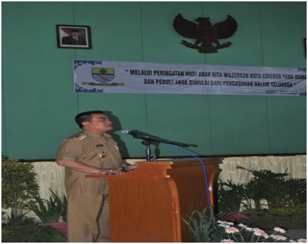 Acara puncak peringatan Hari Anak Nasional Tingkat Kota Cirebon di buka oleh Wakil Walikota Cirebon Drs. H. Nasrudin Azis SH dengan dihadiri Anggota DPRD, Forum Komunikasi Daerah, Ketua TP PKK Kota Cirebon, Ketua Darma Wanita Persatuan Kota Cirebon, Para Kepala OPD Sekota Cirebon, Anak-anak dari Tk, Bkb, Kemas, SD,SMP, SMA/SMK se-Kota Cirebon.