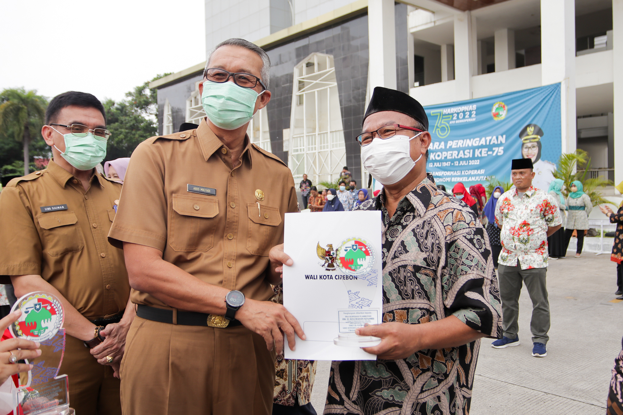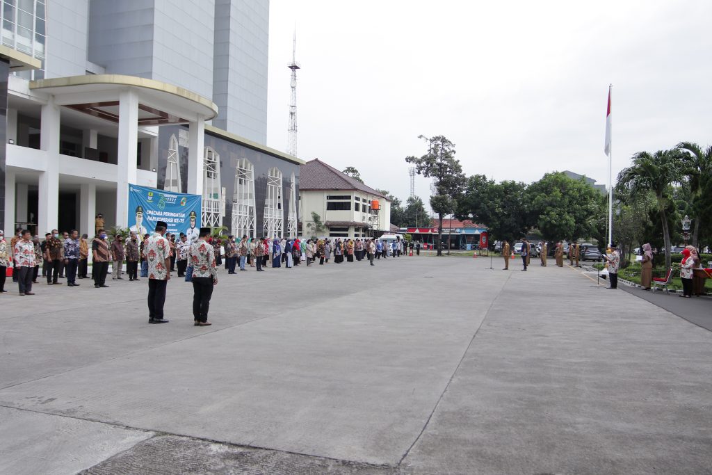 CIREBON - Wali Kota Cirebon, Drs. H. Nashrudin Azis, S.H., memimpin upacara peringatan Hari Koperasi ke-75 di halaman Balai Kota Cirebon, Selasa (12/7/2022). Tahun ini Hari Koperasi mengangkat tema Transformasi Koperasi untuk Ekonomi Berkelanjutan.