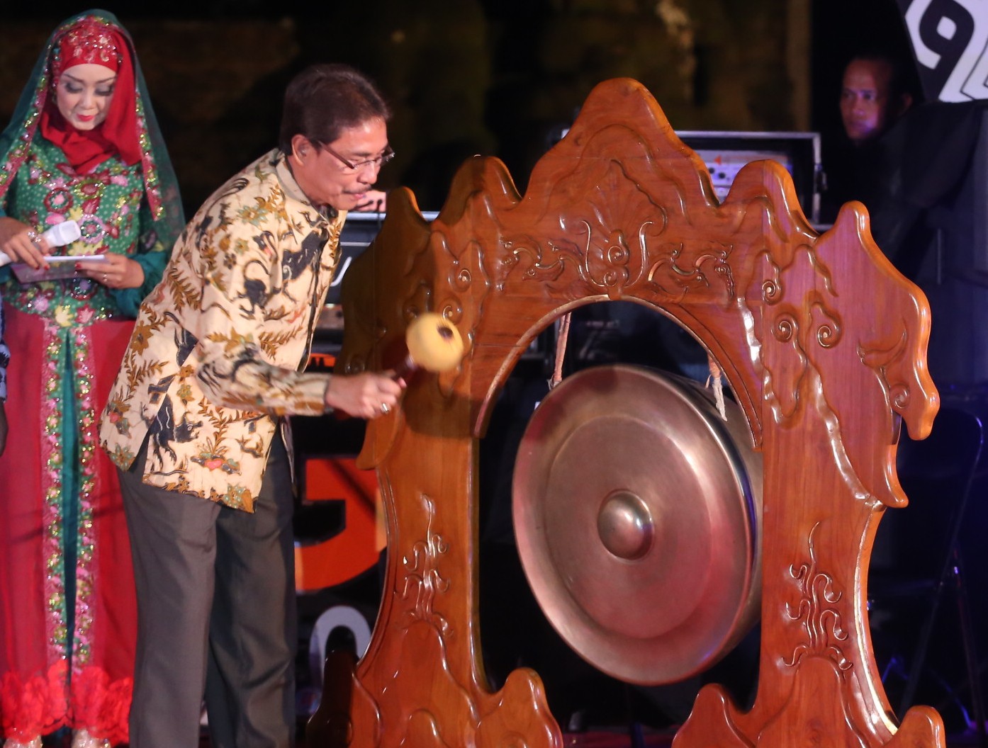 Kepala BKPP Wilayah III memukul gong sebagai simbol dimulainya Raker Komwil III Apeksi 2016