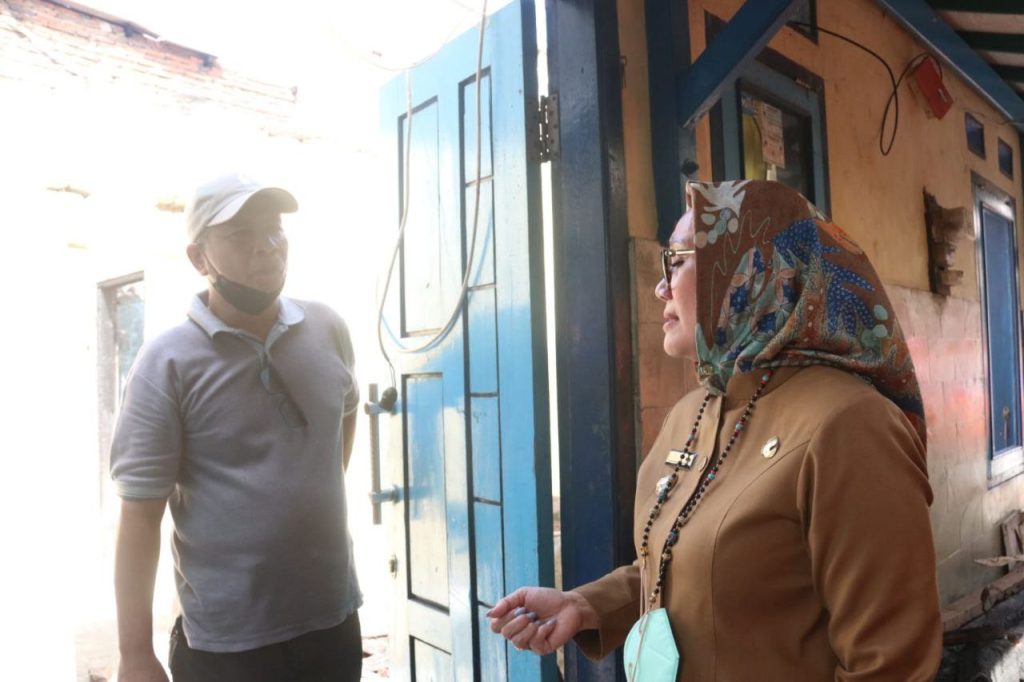 CIREBON - Wakil Wali Kota Cirebon, Dra. Hj. Eti Herawati menyalurkan bantuan kepada korban kebakaran di RW 05, Kelurahan Pulasaren, Kecamatan Pekalipan, Selasa (14/6/2022).