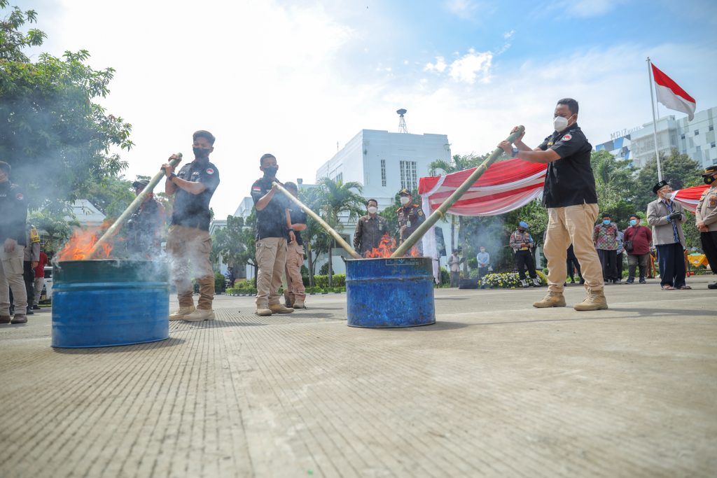 Hal tersebut diungkapkan Sekretaris Daerah (Sekda) Kota Cirebon, Drs. H. Agus Mulyadi, M.Si., yang mewakili Wali Kota Cirebon, Drs. H. Nashrudin Azis, S.H., pada kegiatan pemusnahan barang bukti miras dan narkoba di halaman belakang Balaikota Cirebon, Selasa (26/4/2022).