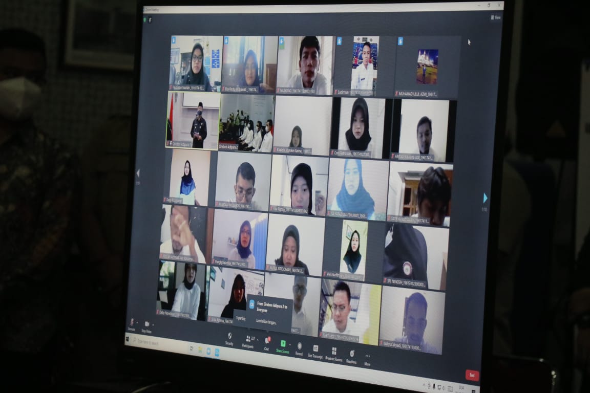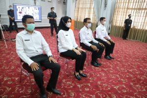 Sedangkan yang lainnya menerima secara virtual dengan tetap mendengarkan pesan yang disampaikan oleh Wali Kota Cirebon, Drs. H. Nashrudin Azis, SH. Penyerahan SK secara simbolis ini untuk menjalankan Protokol Kesehatan (Prokes) di masa pandemi Covid-19.