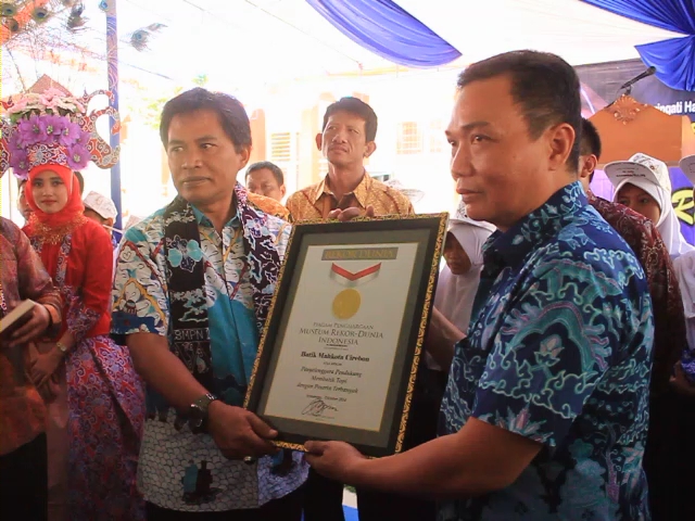KOTA CIREBON, SMP Negeri 18 Kota Cirebon berhasil pecahkan rekor MURI dengan merangkul 515 siswa dalam membatik topi. Rekor tersebut mengalahkan membatik di atas kain sepanjang 3000 meter oleh 386 pembatik yang diselenggarakan oleh Pemerintah Pekalongan . Hal tersebut diungkapkan senior Manager Musium Rekor Indonesia Paulus Pangka saat penutupan acara kegiatan membatik topi di lapangan SMPN 18 Kota Cirebon, Kamis (2/10/2014).