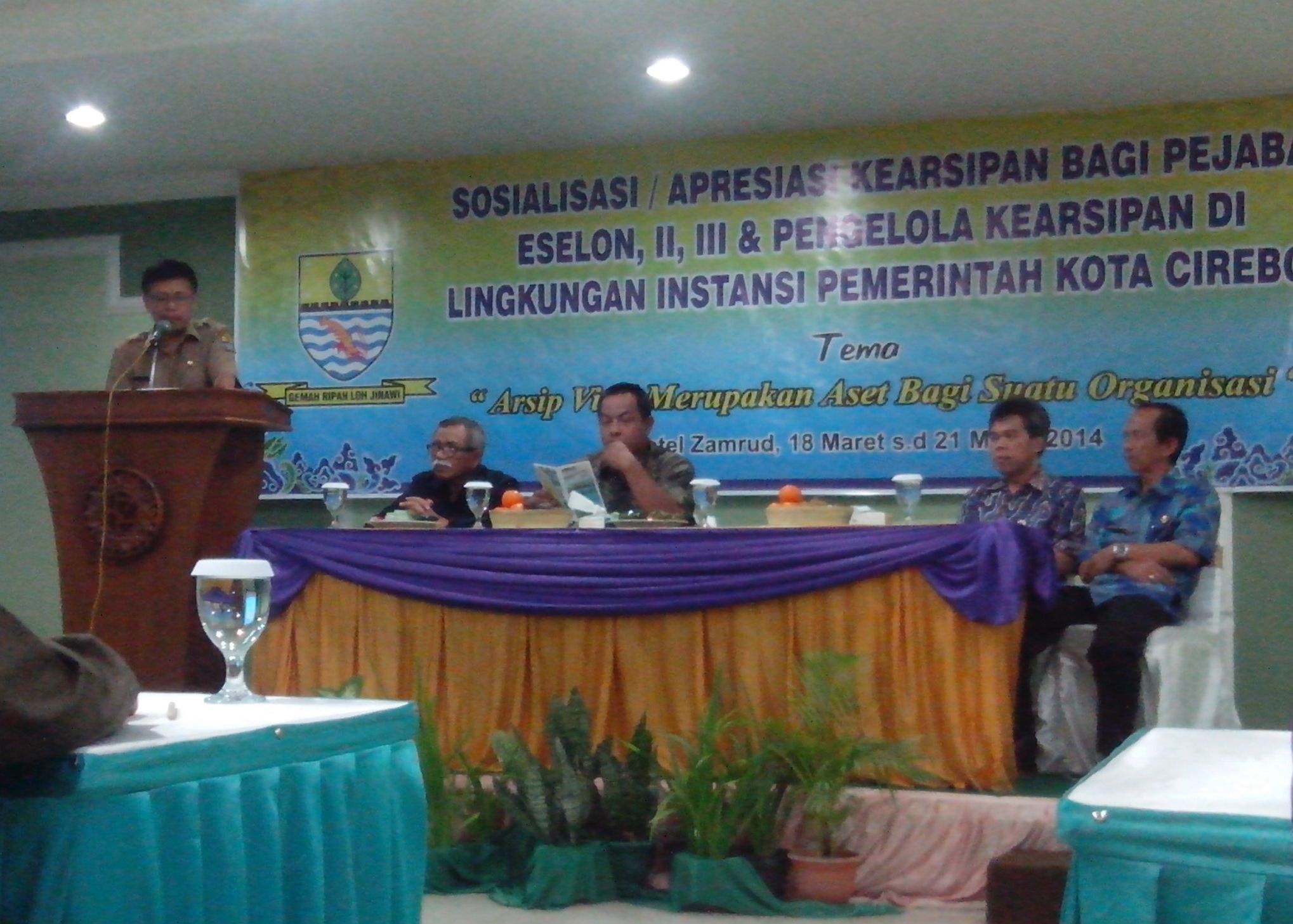 Kejaksan, Sekretaris Daerah Kota Cirebon Drs. Asep Dedi, M.Si pada hari Selasa 18 Maret 2014 memberikan arahan sekaligus membuka Kegiatan Sosialisasi/Apresiasi Kearsipan Bagi Pejabat Eselon II, III, dan Pengelola Arsip di Lingkungan Pemerintah Kota Cirebon. Kegiatan yang dimotori oleh Badan Perpustakaan dan Kerasipan Daerah Kota Cirebon ini direncanakan berlangsung mulai tanggal 18 Maret 2014 sampai dengan 21 Maret 2014 bertempat di Hotel Zamrud Jl. Wahidin Kota Cirebon.