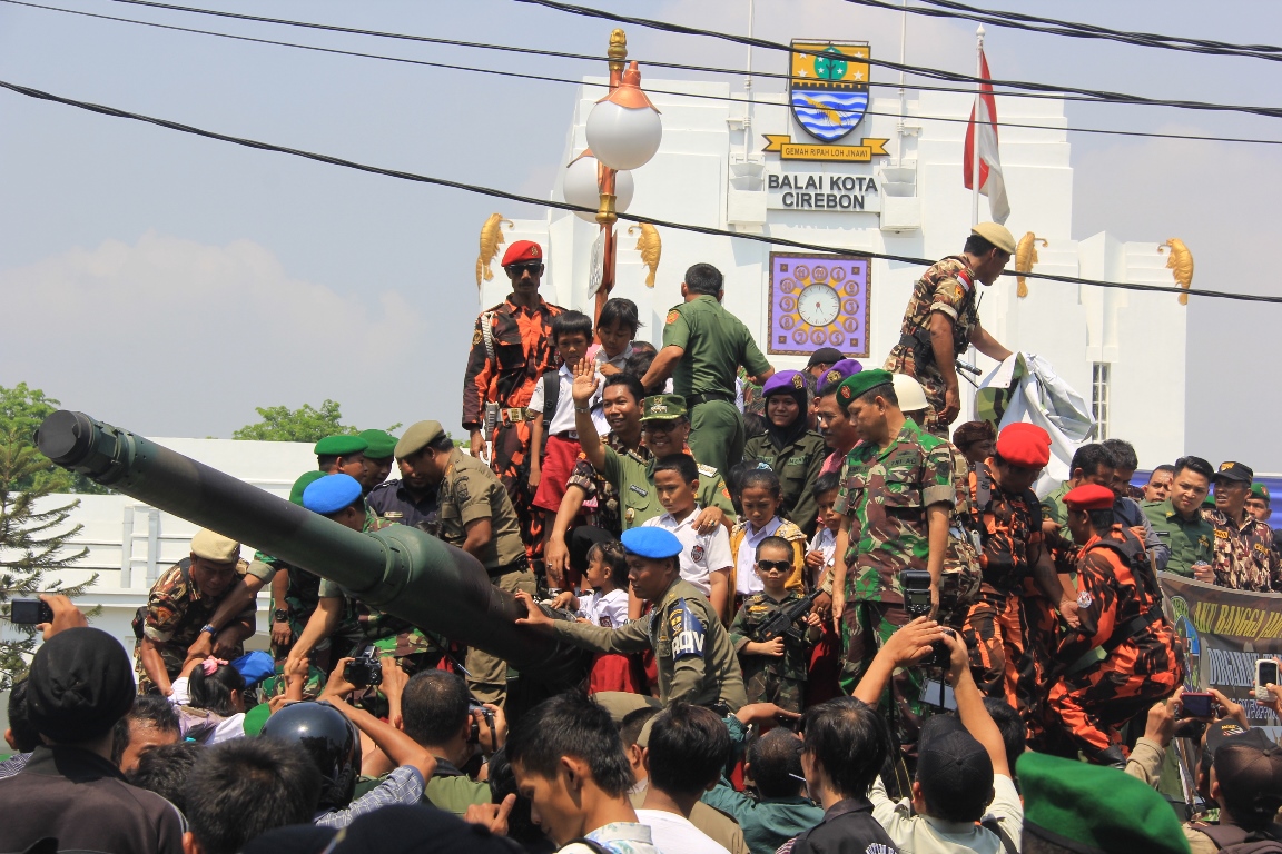 KEJAKSAN, Menyemarakkan HUT Kota Cirebon yang ke-645 serta Dirgahayu TNI yang ke, Tentara Nasioonal Indonesia (TNI) Angkatan Darat (AD) Republik Indonesia mengenalkan Alat Utama Sistem Persenjataan (Alutsista) kepada masyarakat, Senin (13/10) kemarin.
