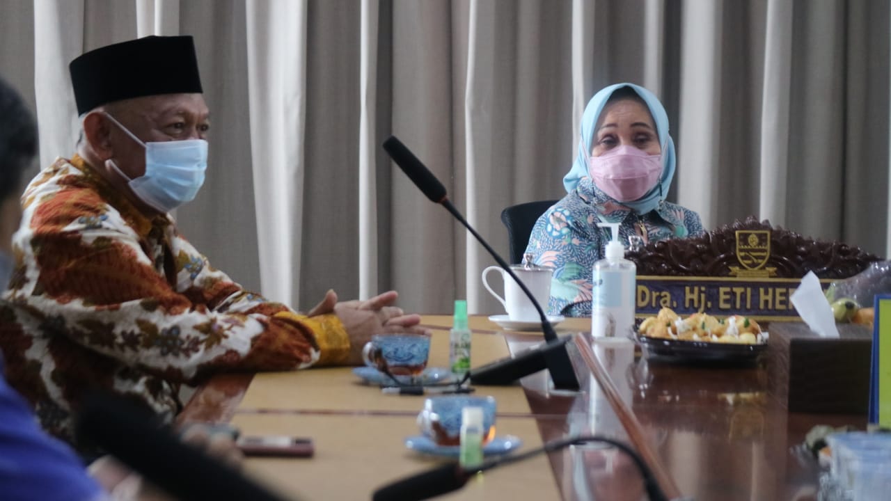 Hal tersebut diungkapkan Wakil Wali Kota Cirebon, Dra. Hj. Eti Herawati usai menerima kunjungan Wakil Wali Kota Tarakan, Kalimantan Utara, Effendy Djuprianto, di ruang kerjanya, Jumat, 5 Februari 2021.