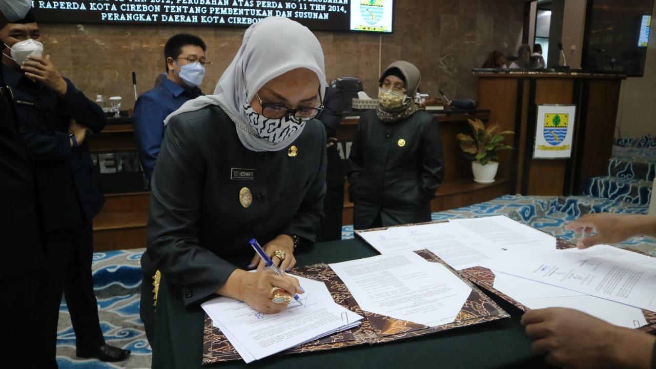 Hal tersebut diungkapkan Wakil Wali Kota Cirebon, Dra. Hj. Eti Herawati, saat Rapat Paripurna DPRD Kota Cirebon Dalam Rangka Persetujuan Terhadap Pencabutan Perda No 4 tahun 2009, Perubahan Ketiga atas Perda No 12 tahun 2012, Perubahan Atas Perda No 11 tahun 2014 dan Raperda Kota Cirebon tentang Pembentukan dan Susunan Perangkat Daerah Kota Cirebon.