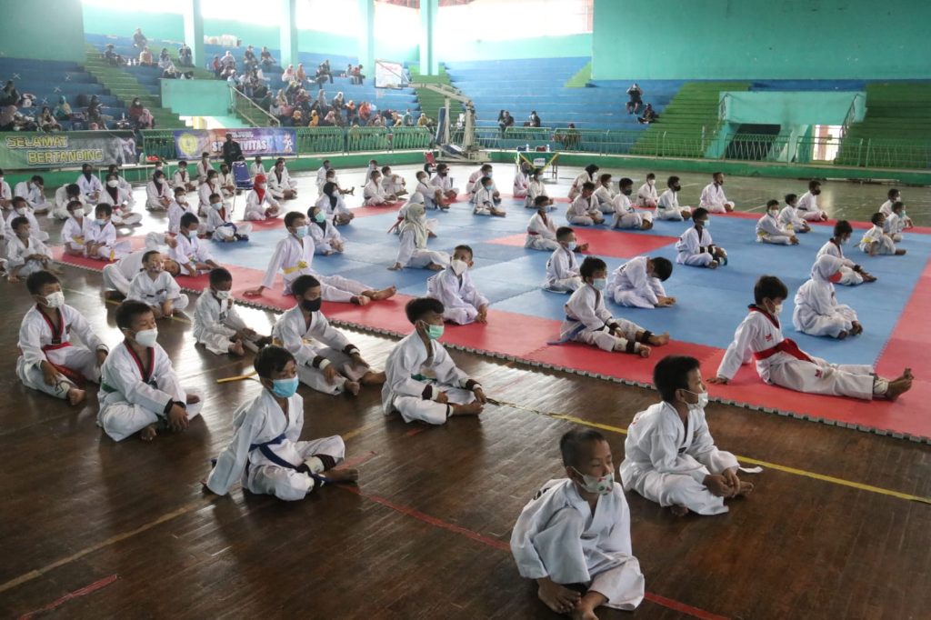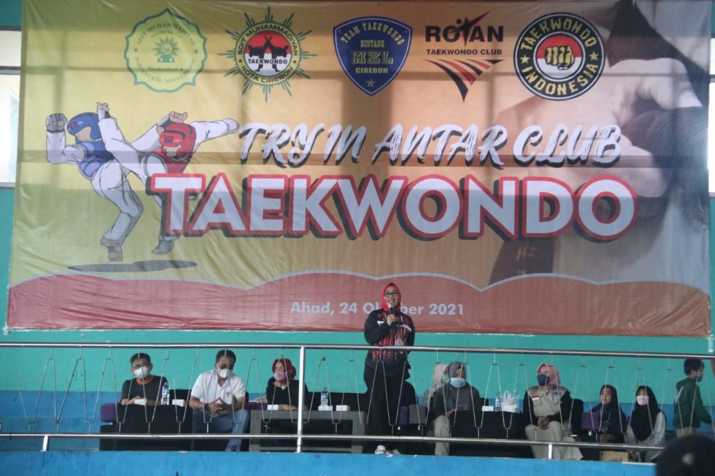 Wakil Wali Kota Cirebon, Dra. Hj. Eti Herawati, usai membuka Try Out Taekwondo antara tim SD IT Muhammadiyah, Bintang MZI dan Rottan Club di GOR Bima, Minggu (23/10/2021). “Pertama tentu saya ucapkan terima kasih ke SD IT Muhammadiyah yang telah menyelenggarakan try out taekwondo ini,” tutur Eti. Dengan try out yang digelar hari ini diharapkan dapat menjadi ajang penjaringan dan pencarian bibit-bibit berbakat atlet taekwondo di Kota Cirebon.