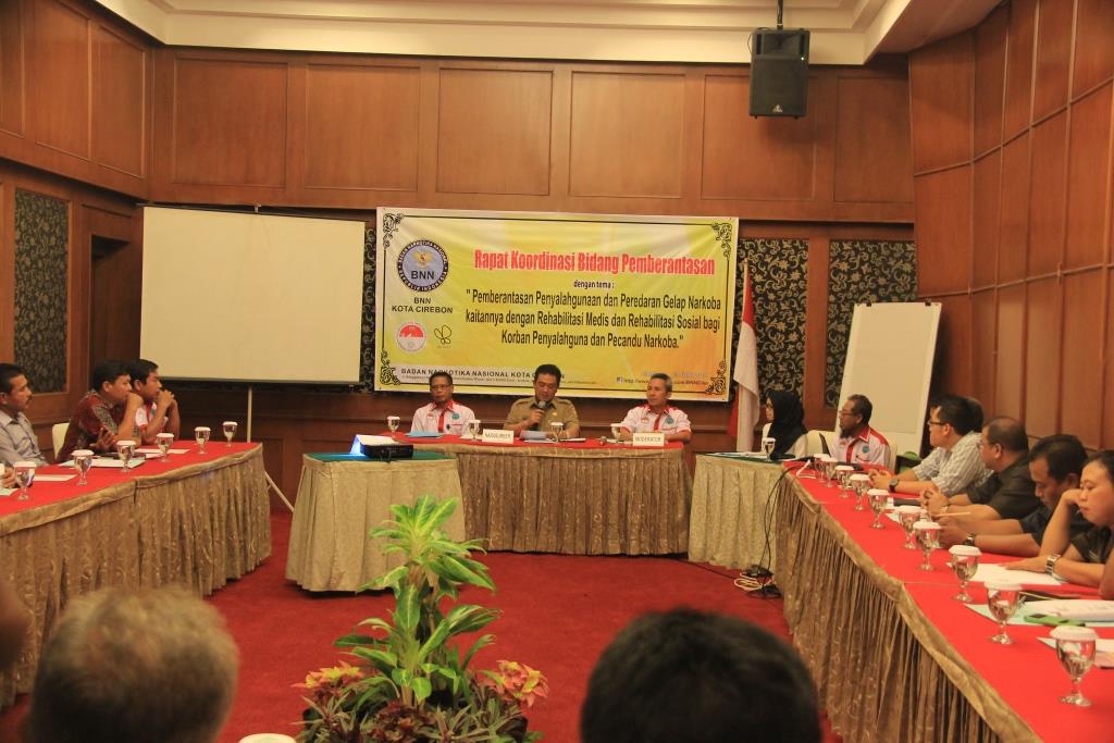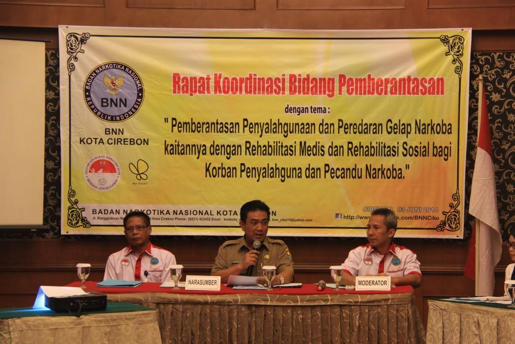 Kota Cirebon, Selasa (3/6/2014) Wakil Walikota Cirebon Drs Nasrudin Azis SH pimpin Rapat Koordinasi (Rakor) Pemberantasan Penyalahgunaan dan Peredaran Gelap Narkoba 2014 Badan Narkotika Nasional (BNN) Tahun 2014 tingkat Kota Cirebon yang di selenggarakan di Hotel Bentani Kota Cirebon. Kegiatan ini di hadiri Kepala Badan Narkotika Nasional Provinsi Jawa Barat serta instansi terkait se-Kota Cirebon.