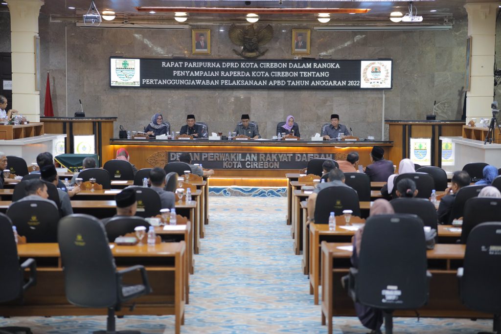 CIREBON – Wali Kota Cirebon, Drs. H. Nashrudin Azis, S.H., menyampaikan Rancangan Peraturan Daerah (Raperda) tentang Pertanggungjawaban Pelaksanaan APBD Tahun Anggaran 2022 kepada DPRD Kota Cirebon, Senin (26/6/2023), dalam Rapat Paripurna DPRD di ruang Griya Sawala gedung DPRD.