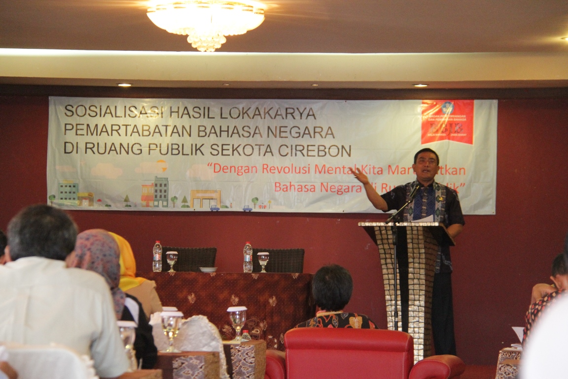 Kota Cirebon - Walikota Cirebon Drs Nasrudin Azis SH menyampaikan ucapan terima kasih, pasalnya Kota Cirebon ditunjuk sebagai salah satu dari 24 Kota/Kabupaten di Jawa Barat untuk mensosialisasikan kegiatan Pemartabatan Bahasa. Tentunya hal ini akan meningkatkan kesadaran masyarakat dalam penggunaan bahasa Indonesia yang baik dan benar di ruang Publik. Ujar Azis dalam sambutannya saat membuka acara Sosialisasi Pemartabatan Bahasa Negara Se-Kota Cirebon, di Hotel Grand Tryas Jalan Tentara Pelajar Kota Cirebon.