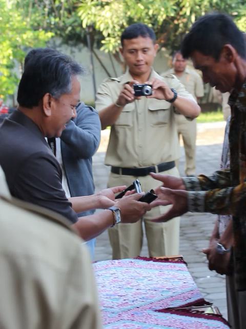 Penyerahan Traktor dilakukan secara simbolis dengan dilakukan penadatanganan berita acara penyerahan traktor dan penyerahan engkel oleh Walikota Cirebon.