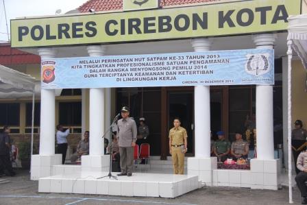 Walikota Selaku Inspektur Upacara membacakan amanat Kepala Kepolisian Negara Republik Indonesia Daerah Jawa Barat yang bertema "Melalui Peringatan HUT Satpam ke 33 Tahun 2013, Kita tingkatkan Profesionalisme satuan pengamanan dalam rangka menyongsong Pemilu 2014 guna terciptanya kemanan dan ketertiban di lingkungan kerja".