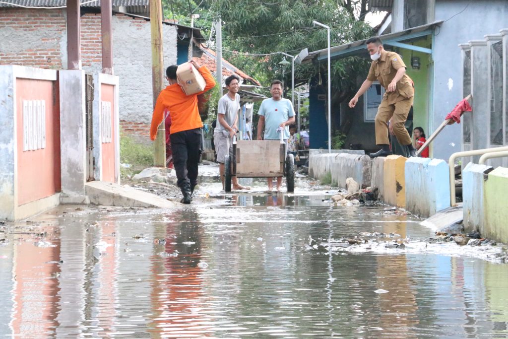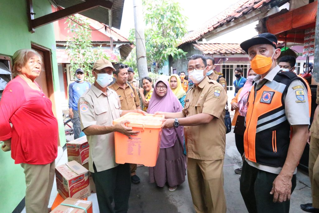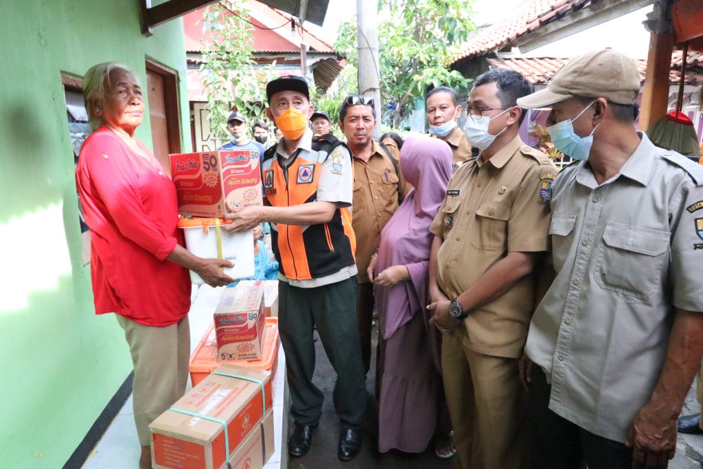 CIREBON – Badan Penanggulangan Bencana Daerah (BPBD) Kota Cirebon membagikan bantuan kepada sejumlah warga korban banjir rob, Selasa (24/5/2022) sore, di Kelurahan Kasepuhan Kecamatan Lemahwungkuk Kota Cirebon.