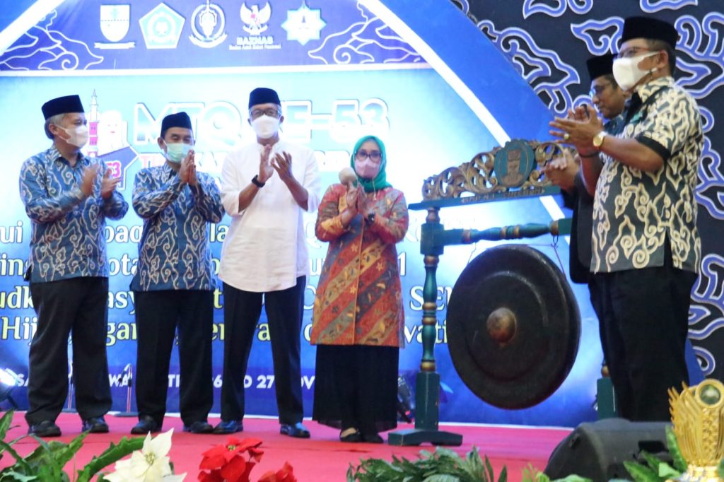 Wakil Wali Kota Cirebon, Dra. Hj. Eti Herawati saat membuka kegiatan MTQ ke-53 tingkat Kota Cirebon, Jumat (26/11/2021) di At Taqwa Center menjelaskan penyelenggaran MTQ merupakan wujud dari keinginan yang kuat untuk membumikan ajaran Al-Qur’an. “Serta menegakkan syiar Islam untuk memperkokoh nilai-nilai agama dalam kehidupan masyarakat,” tutur Eti.
