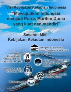 Visi presiden untuk menjadikan Indonesia sebagai poros maritim dunia segera diterjemahkan oleh Kementerian melalui beragam program kemaritiman. Untuk memberikan acuan penyusunan program dan kebijakan di bidang kemaritiman, pemerintah mengeluarkan Peraturan Presiden (Perpres) Nomer 16/2017 tentang Kebijakan Kelautan Indonesia. Dokumen Nasional ini menjadi instrumen yang menyinergikan gerak dan langkah seluruh pemangku kepentingan dalam mencapai cita-cita Indonesia sebagai Poros Maritim Dunia.