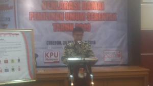 Hal itu ditegaskan Asep saat memberikan sambutan pada Deklarasi Damai Pemilu 2019 yang digelar di Kantor Komisi Pemilihan Umum (KPU) Kota Cirebon, Senin 24 September 2018 yang dihadiri Forum Koordinasi Pimpinan Daerah (Forkopimda), pimpinan partai dan sejumlah tamu undangan lainnya.