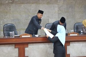 CIREBON- Dewan Perwakilan Rakyat Daerah (DPRD) Kota Cirebon mengesahkan Perda Penyertaan Modal Perumda Air Minum Tirta Giri Nata di Ruang Rapat Griya Sawala DPRD Kota Cirebon, Senin (30/7).