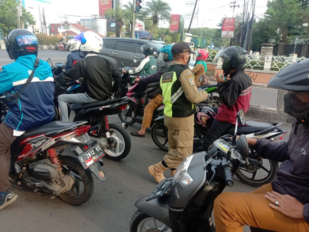 “Saat jam sibuk pagi dan sore hari, anggota Linmas berjaga di lampu merah untuk mengingatkan masyarakat menjaga prokes,” ujarnya.