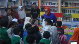 Kegiatan story telling merupakan kegiatan rutin yang dilakukan di Perpustakaan 400 Kota Cirebon setiap Selasa. Eti Herawati yang sudah ditetapkan sebagai bunda literasi Kota Cirebon tak segan-segan duduk beralaskan karpet bersama dengan anak-anak PAUD yang hari ini mendatangi Perpustakaan 400. Bahkan Eti juga turut membacakan sebuah cerita. Anak-anak pun mendengarkan cerita dari bunda literasi Kota Cirebon dengan penuh semangat.