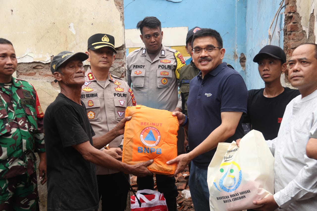 CIREBON- Pemerintah Kota Cirebon bersama Polres Cirebon Kota dan unsur Forkopimda bergerak cepat untuk memberikan bantuan kepada Rusmana, seorang warga Kampung Kegiren, Kelurahan Kejaksan, Kota Cirebon yang rumahnya roboh akibat hujan deras yang mengguyur kawasan tersebut.