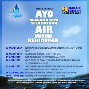 Dalam rangka meningkatkan kepedulian masyarakat akan pentingnya air dan pengelolaan air limbah, Kementerian Pekerjaan Umum dan Perumahan Rakyat (PUPR) menggelar kampanye publik Hari Air Dunia (HAD), Minggu (26/3) pagi di kawasan car free day, Jakarta. Aksi ini diawali dengan sepeda santai dari Kampus Kementerian PUPR di Jalan Pattimura menuju lokasi acara di Sarinah-Thamrin. Kegiatan ini merupakan bagian dari rangkaian acara peringatan HAD yang digelar oleh Kementerian PUPR dan masih akan berlangsung hingga April mendatang.