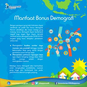 Lebih jauh, jika dimanfaatkan dengan baik, bonus demografi dapat mengurangi tingkat ketergantungan, mendorong produktivitas, dan menjadi sumber pertumbuhan ekonomi. Saat TFR menurun, pertumbuhan pendapatan per kapita untuk memenuhi kebutuhan penduduk usia anak-anak dapat dialihkan untuk peningkatan mutu sumber daya manusia. Oleh karena itu, penduduk usia produktif harus mampu menjadi mesin pertumbuhan, dan bukan menjadi beban ekonomi. Dengan demikian, peningkatan kualitas sumber daya manusia menjadi kunci keberhasilan agar penduduk produktif mempunyai kompetensi dan keahlian. Kemudian, soft skills juga harus ditingkatkan agar tenaga kerja memiliki sikap yang positif, optimistis, kreatif, dan bersedia maju. Kebijakan sumber daya manusia, kependudukan, kesehatan, pendidikan, ekonomi dan ketenagakerjaan, infrastruktur dan sumber daya alam serta politik hukum dan keamanan juga harus diarahkan dengan tepat. “Pemerintah ingin menekankan improvisasi kebijakan yang terpadu antar kementerian/lembaga dan pihak terkait lainnya dalam menjaga keseimbangan pertumbuhan penduduk, mengantisipasi perubahan struktur penduduk, dan optimalisasi bonus demografi,” tutup Menteri Bambang.