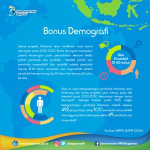 Penurunan TFR yang terjadi setelah pengenalan program Keluarga Berencana pada 1970-an membuat Indonesia saat ini berada pada tahap terbukanya jendela kesempatan (windows of opportunity), yakni kondisi di mana rasio ketergantungan penduduk Indonesia terus berkurang dan menuju pada titik terendah yang menurut perhitungan akan terjadi pada 2020-2030 (UNFPA, 2015). Sebagai ilustrasi, pada 2015, SUPAS merilis angka ketergantungan penduduk Indonesia sebesar 49,2 yang artinya setiap 100 penduduk usia produktif menanggung beban sebanyak sekitar 49 penduduk usia nonproduktif. Pada 2020-2030 mendatang, kondisi tersebut akan memunculkan bonus demografi, yaitu peluang yang dinikmati suatu negara sebagai akibat dari besarnya proporsi penduduk produktif (rentang usia 15-64 tahun) dibandingkan dengan penduduk usia nonproduktif (usia kurang dari 15 tahun dan di atas 65 tahun).