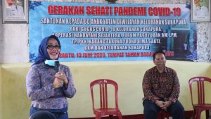Hal itu diungkapkan Eti saat menghadiri acara penyerahan santunan yang diberikan kepada 60 anak yatim hasil gotong royong masyarakat Kelurahan Sukapura pada Sabtu 13 Juni 2020 pada kegiatan yang bertema Sehati Pandemi Covid 19. “Kami apresiasi inisiatif seluruh elemen masyarakat di Kelurahan Sukapura yang masih bisa memberikan santunan untuk anak yatim,” katanya.