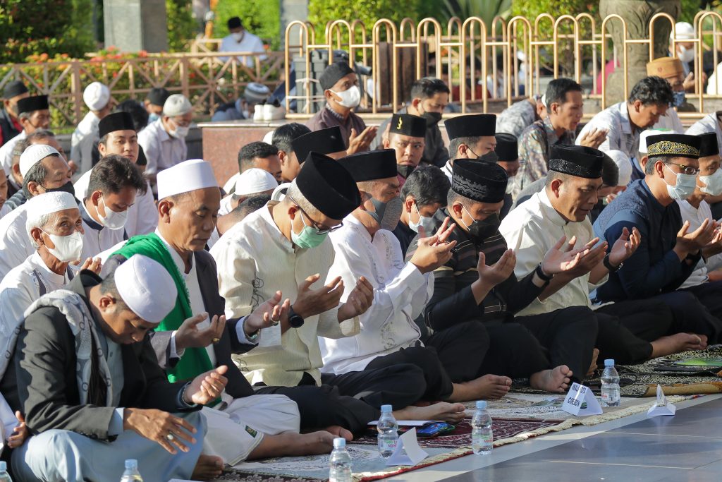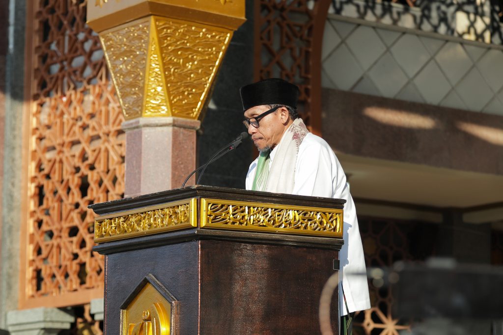 Azis juga mengajak jemaah salat Id untuk mendoakan jemaah haji Indonesia yang tengah berada di Tanah Suci agar senantiasa diberi kekuatan, pertolongan, dan dimudahkan dalam menyelesaikan seluruh rangkaian ibadah haji.