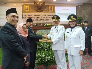 CIREBON—Wali Kota Cirebon periode 2018-2023 Drs. H. Nashrudin Azis bersama wakilnya, Dra. Hj. Eti Herawati memaparkan visi misinya di hadapan anggota DPRD Kota Cirebon, Kamis 13 Desember 2018, selang sehari setelah dilantik oleh Gubernur Jawa Barat.
