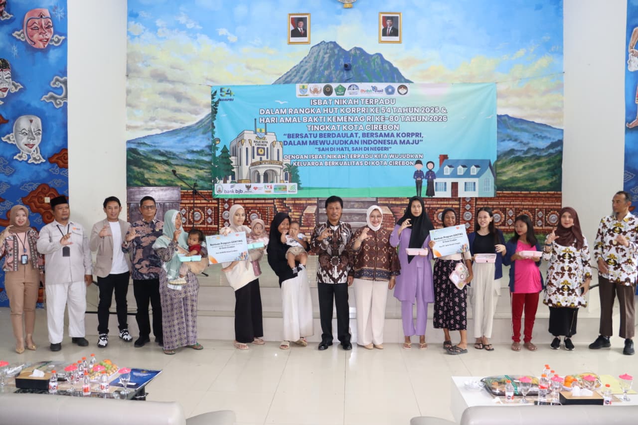 Cirebon – Pemenuhan hak sipil serta perlindungan terhadap perempuan dan anak adalah prioritas. Pemerintah Kota Cirebon mewujudkan hak tersebut dalam kegiatan Isbat Nikah Terpadu. Kegiatan ini juga dalam rangka peringatan HUT Ke-54 Korps Pegawai Republik Indonesia (Korpri) yang diselenggarakan di Aula Kantor Kecamatan Harjamukti pada Kamis (20/11/2025).