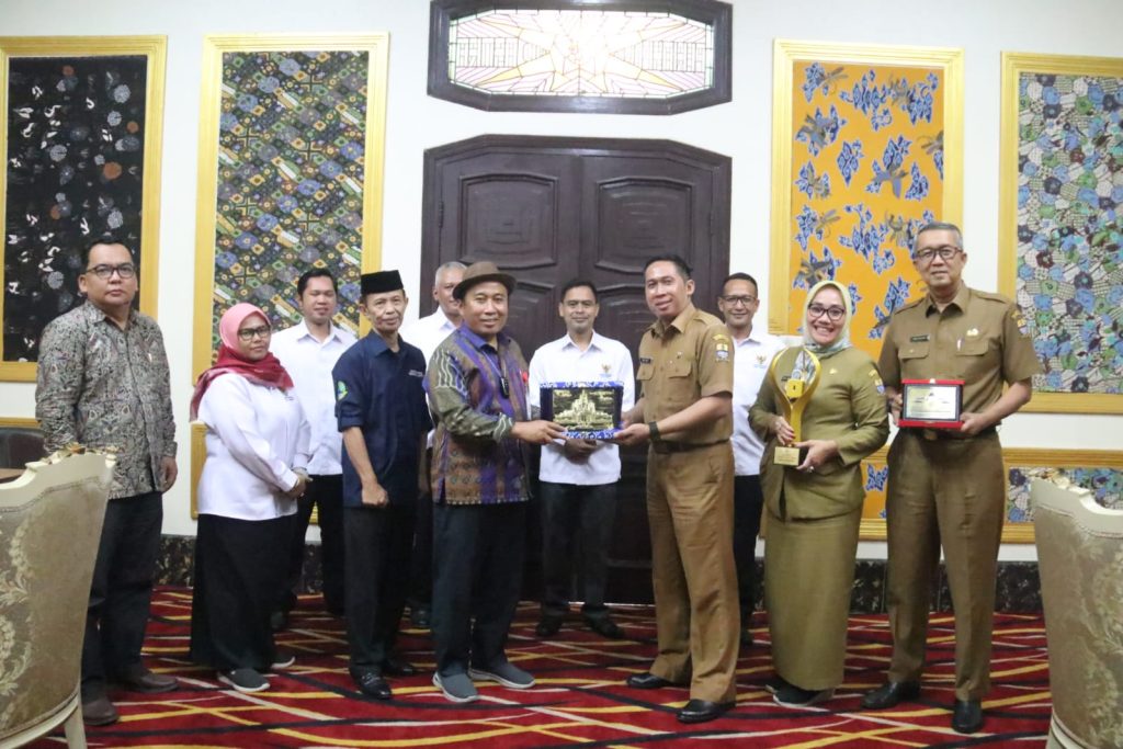 CIREBON – Komisi Informasi (KI) Jawa Barat menyerahkan trofi penghargaan sebagai Badan Publik Kategori Pemerintah Kabupaten/Kota Informatif tahun 2022 kepada Pemerintah Daerah (Pemda) Kota Cirebon, di ruang Kanigaran, Balai Kota Cirebon, Selasa (31/1/2023).